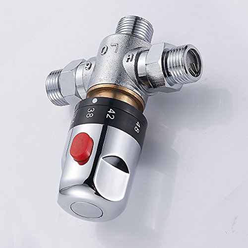 Studio : Hotbestus Publisher : Hotbestus Product Description Connections:G1/2" Working Pressure:0.1-1.0Mpa Cold water Temperature: 5℃-29℃(41οF-84.2οF) Hot water temperature:50℃-80℃(122οF-176οF) Working Temperature:20℃-50℃(68οF-122οF) Outlet temperature range: 20-50 ℃(68οF-122οF) Set the safety temperature to 38 ° C(100.4οF) Safety Features: If the cold water supply is insufficient, the flow will be reduced to almost closed, avoiding the risk of scalding. Temperature Accuracy: Maintain a constant ° C setting. Outlet temperature stability: When the inlet temperature remains constant, cold or hot water pressure changes 50%, the outlet temperature changes ± temperature. The pressure of the water supply is kept constant, the temperature of the hot water produced can rise from 60 ° C to 75 ° C (5 ° C / min) and the temperature of the water changes ± to adjust the temperature. Spool: 90-degree ceramic cartridge, brass temperature