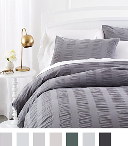 Pinzon Seersucker Duvet Cover Set - Full/Queen, Dark Grey