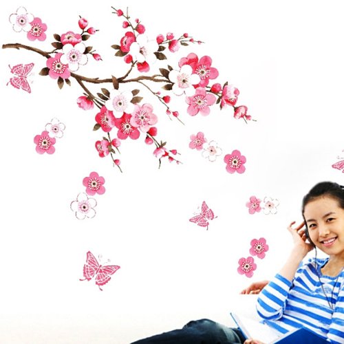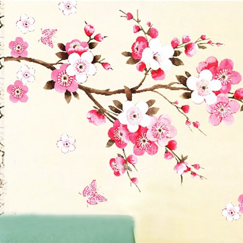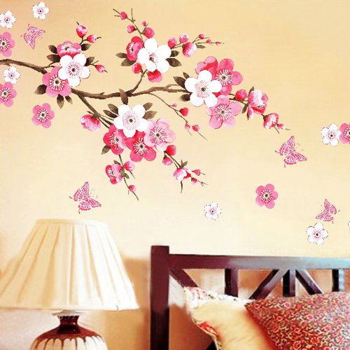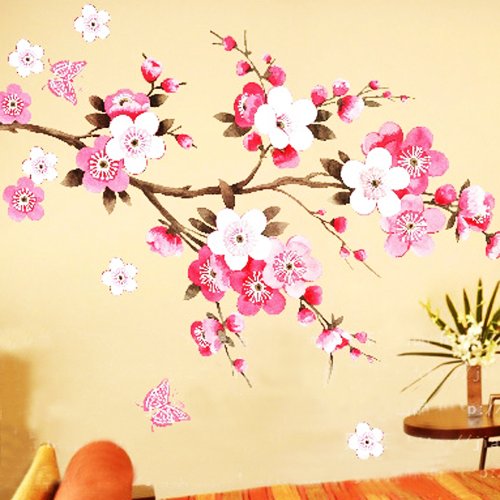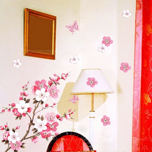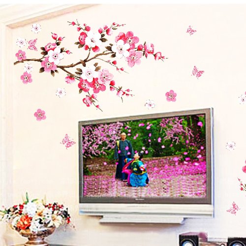 - Title : Yesurprise New PVC Creative Pink Cherry Peach Blossom Plum Flowers Butterfly living room backdrop Wall Stickers baby kid's room decal Paper House Sofa Room
