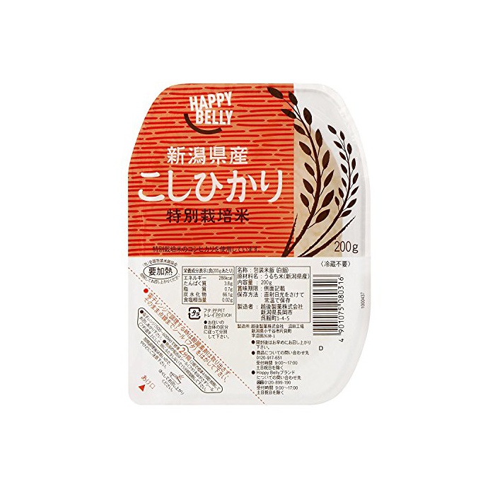 원본상품명: 【Amazonブランド】Happy Belly パックご飯 新潟産 特別栽培米 こしひかり 200g×5個(白米)
