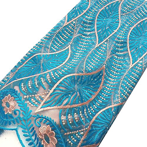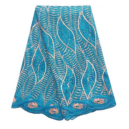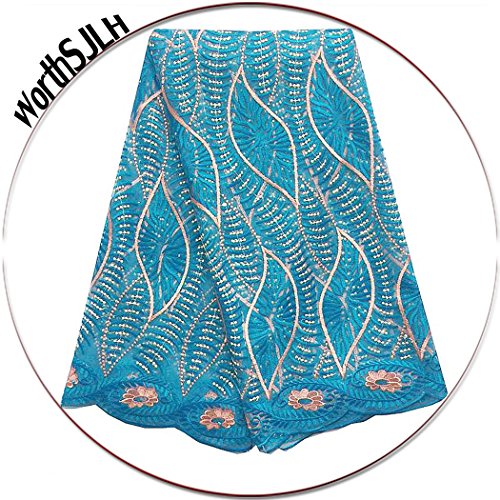 WorthSJLH 5 Yards African Beaded French Net Lace Fabric Embroideried and Rhinestones Tulle Wedding Lace Fabrics for Dresses LF806 (sky blue)