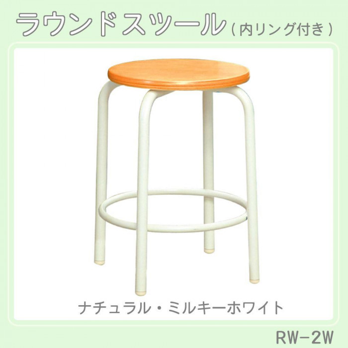 スタッキングできて収納に便利なラウンドスツールです。 製造国:日本 素材・材質:ブナ合板、スチールパイプ 商品サイズ:W335×D335×H450mm 重量:2.9kg 仕様:耐荷重:100kg完成品 付属品:取扱説明書 ※サプライヤー直送品 ご注文後7~8営業日後の出荷となります【商品名】ルネセイコウ ラウンドスツール(内リング付き) ナチュラル・ミルキーホワイト 日本製 完成品 RW-2W