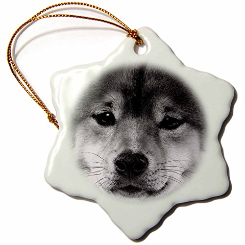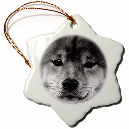 3dRose orn_11333_1 Shiba Inu Porcelain Snowflake Ornament, 3-Inch