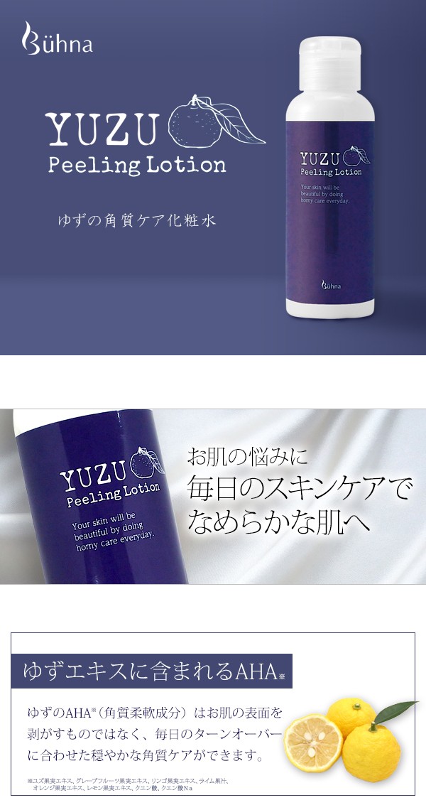 | ユズ果実エキスをたっぷり配合した、お肌にやさしい角質ケア化粧水。フルーツ酸(ユズ果実エキス)で角質ケアし、さらに角質層への浸透力が高いコメヌカ発酵エキスで保湿力を高めます。 |