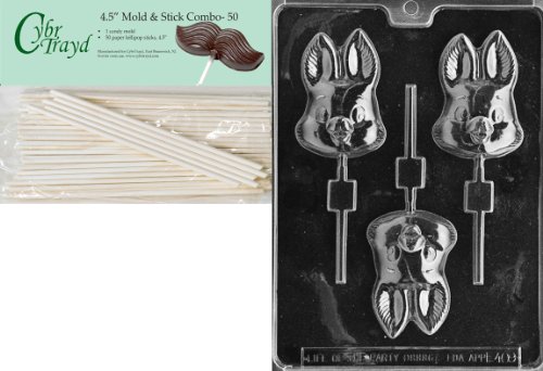 Cybrtrayd Cute Bunny Lolly Bunny Head Easter Chocolate Candy Mold with 50 4.5-Inch Lollipop Sticks