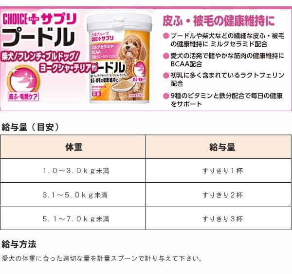 | プードル以外にも、柴犬・フレンチブルドッグ・ヨークシャテリア他、繊細な皮ふ・被毛の犬種の健康維持をサポートします。 |