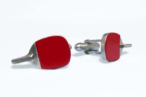 卓球に使われるラケットのカフスです。鮮やかな赤で、ワンポイントとして綺麗に映えます。