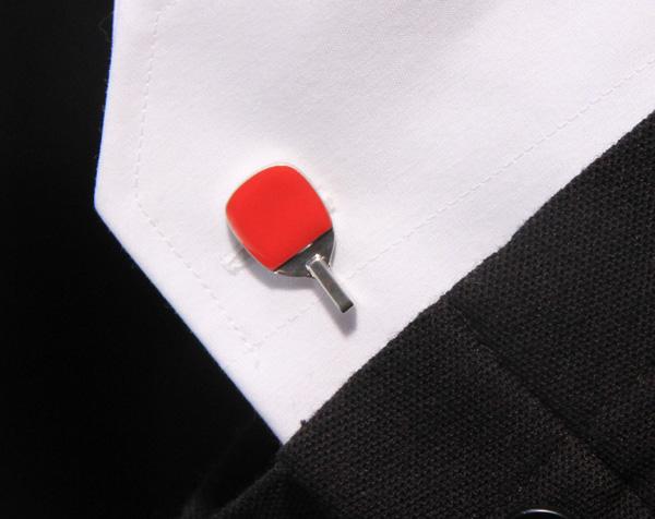 卓球に使われるラケットのカフスです。鮮やかな赤で、ワンポイントとして綺麗に映えます。 製造国:日本 素材・材質:すず合金/真鍮/メッキ加工/エポキシ樹脂 商品サイズ:22.5×12.5mm(1個あたり) 仕様:専用ケース付き ※サプライヤー直送品 ご注文後2~3営業日後の出荷となります【商品名】ラケットのカフス C0044