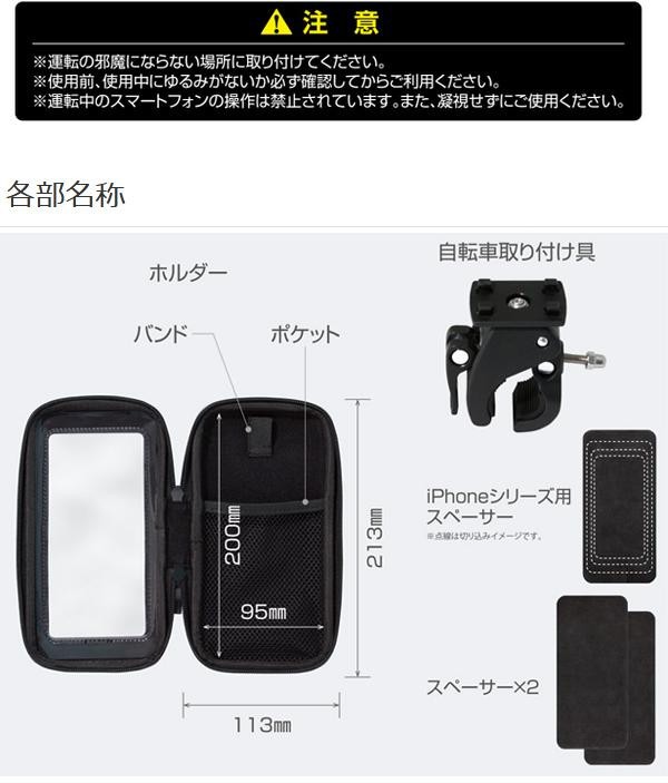 | セット内容 | ホルダー、自転車取り付け具、iPhoneシリーズ用スペーサー、スペーサー×2 |