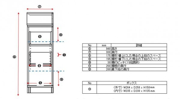 サイズW650×D300×H948mm