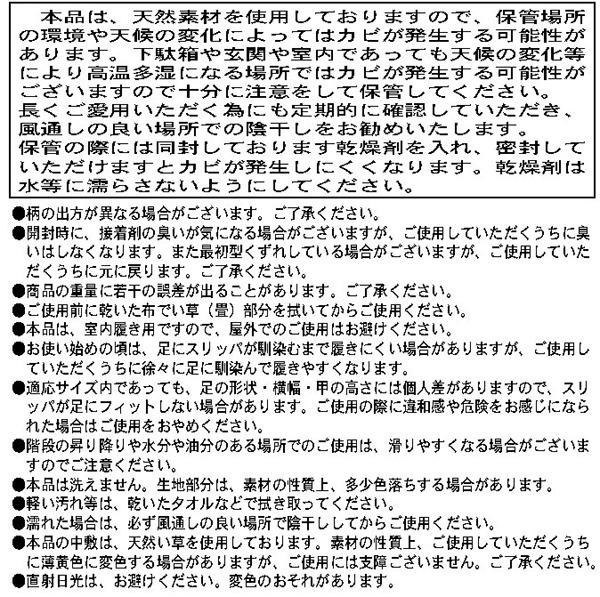 | 素材・材質 | 生地:ポリエステル 中敷:い草 中材・底材:EVA樹脂 |