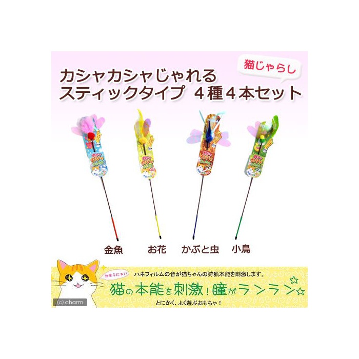 원본상품명:アソ?ト ペッツル?ト カシャカシャじゃれる(スティックタイプ)4種4本 猫じゃらし 猫 猫用おもちゃ