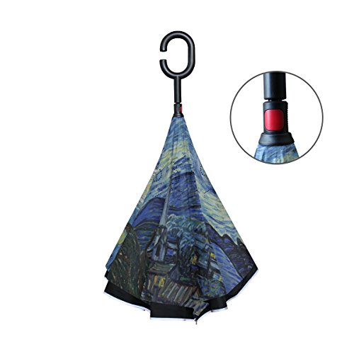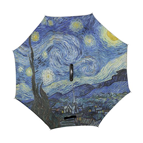 -. Title : ALAZA Van Gogh Starry Night Art Windproof UV Proof Reverse Folding Umbrella, Double Layer Travel Inverted Umbrella with C Shape Handle for Car Use