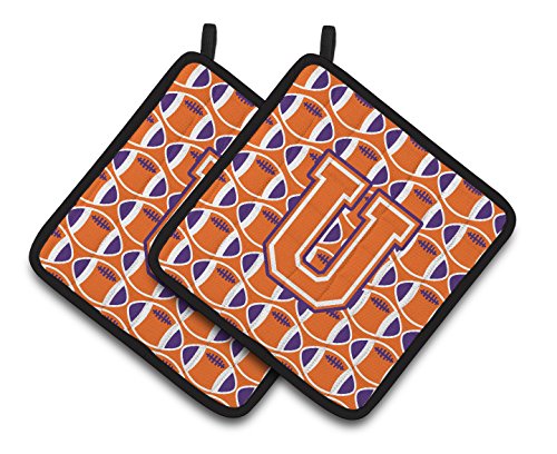Caroline's Treasures Letter U Football Orange, White & Regalia Pair of Pot Holders CJ1072-UPTHD, 7.5HX7.5W, Multicolor
