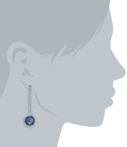 Blue faceted round bead drop, long silver tone ear wire