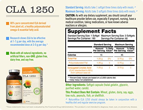 NatureWise CLA 1250は、信頼できる非GMOグルテンフリーソースから抽出された100%純粋なベニバナ油を使用しています。各バッチを80%アクティブCLAに標準化し、最高品質で最も効果的な製品をご提供できるようにします。