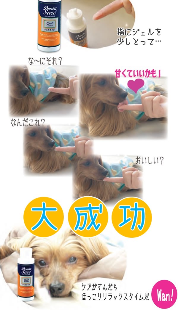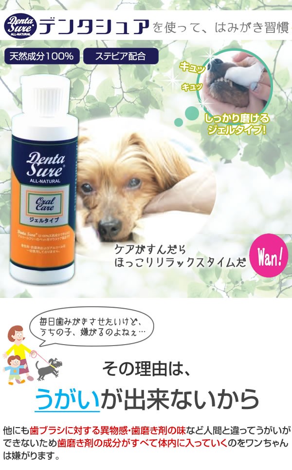 | ワンちゃんが気に入ってくれることを第一に考えた、天然成分100%のマウスケア。ステビア(甘味料)配合でワンちゃんがペロペロ舐めたくなるほど!飼い主の指やガーゼでしっかりケアできるジェルタイプ。 |