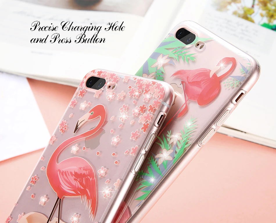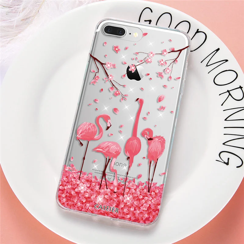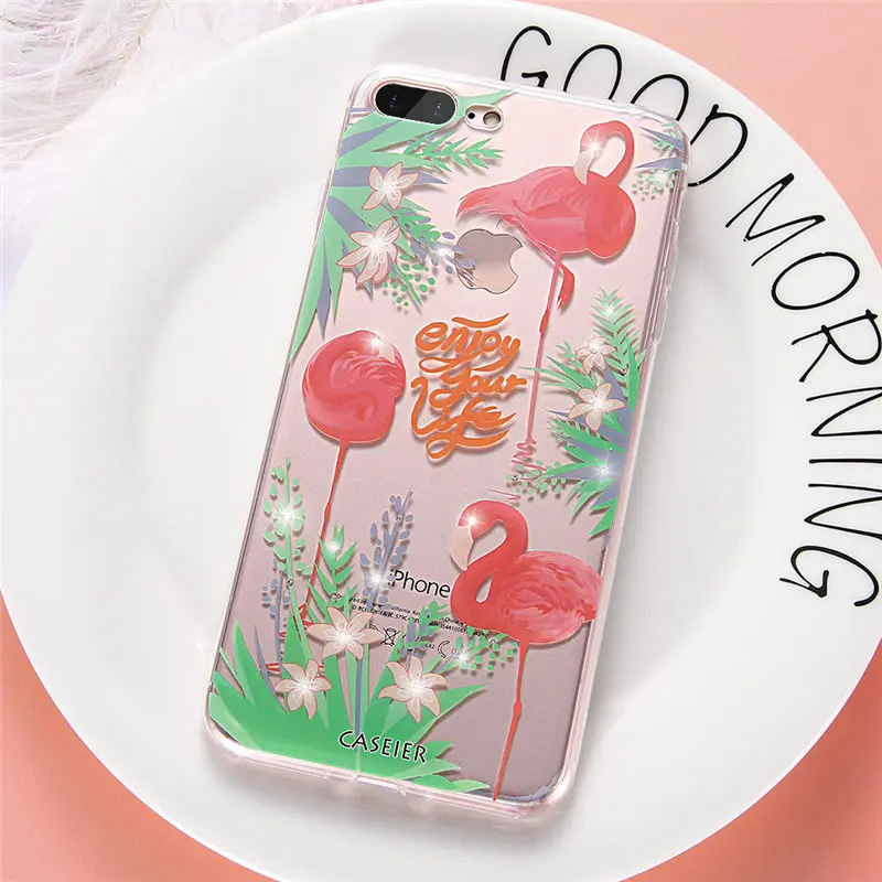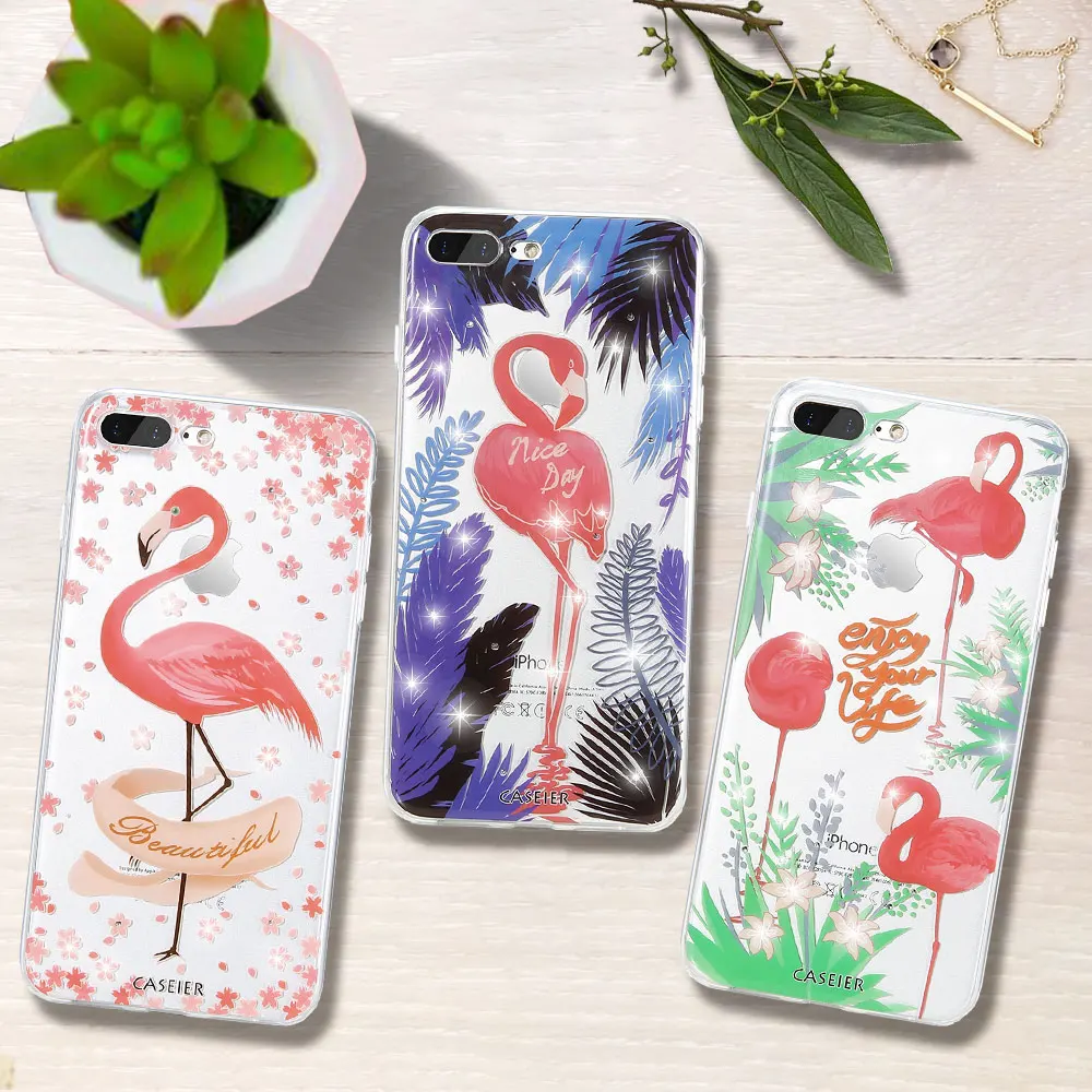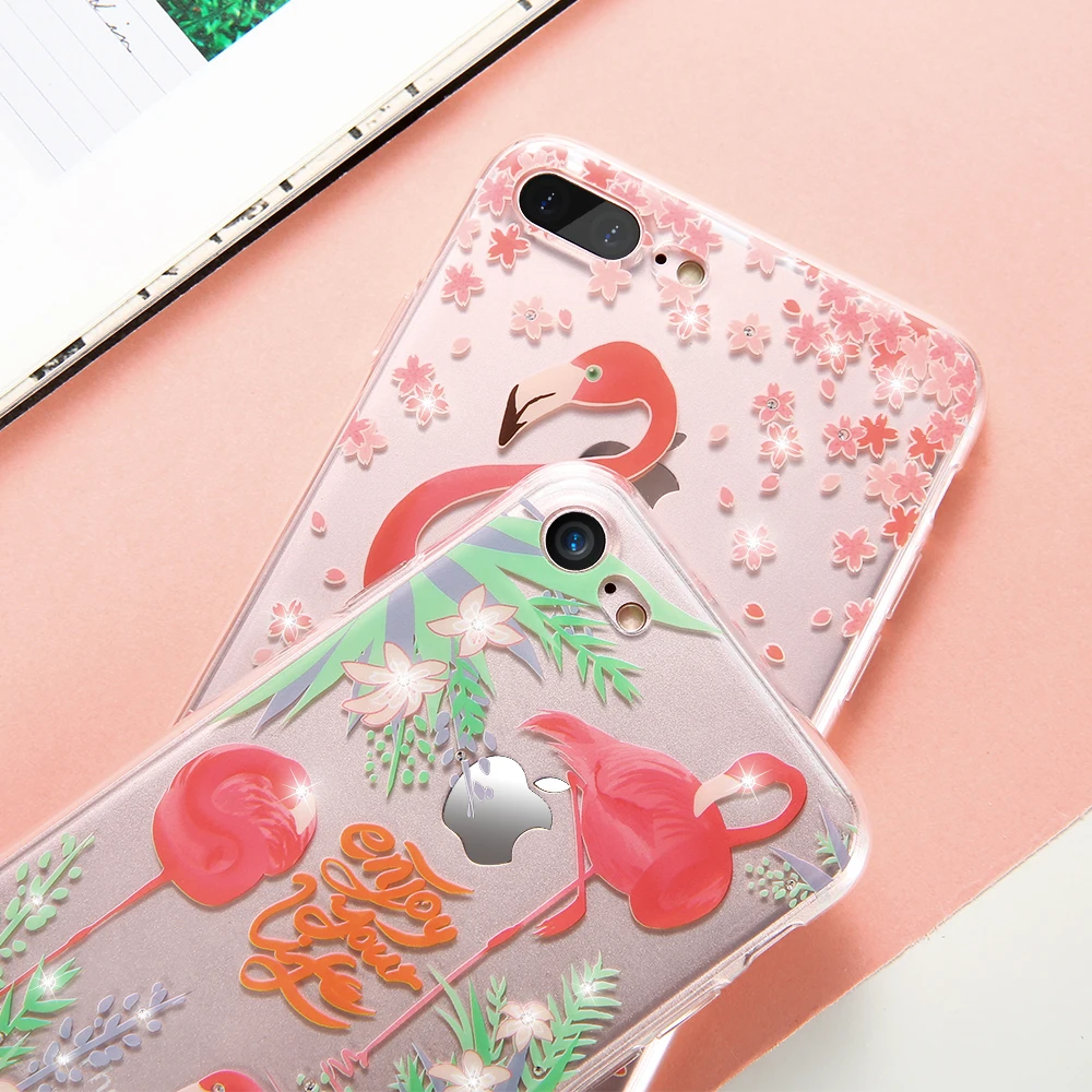 Features:Rhinestone Glitter Silicone Flamingo iPhone Case