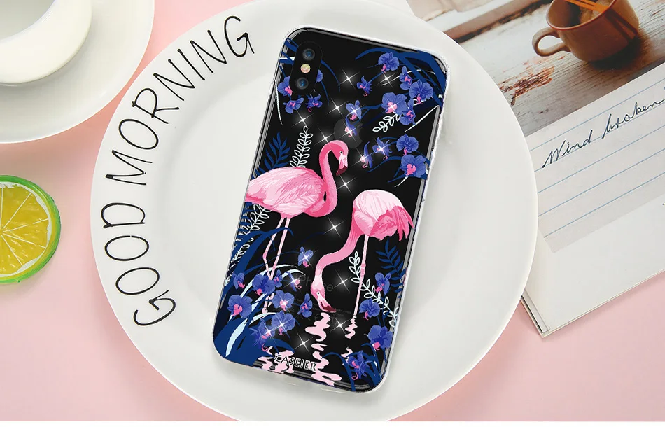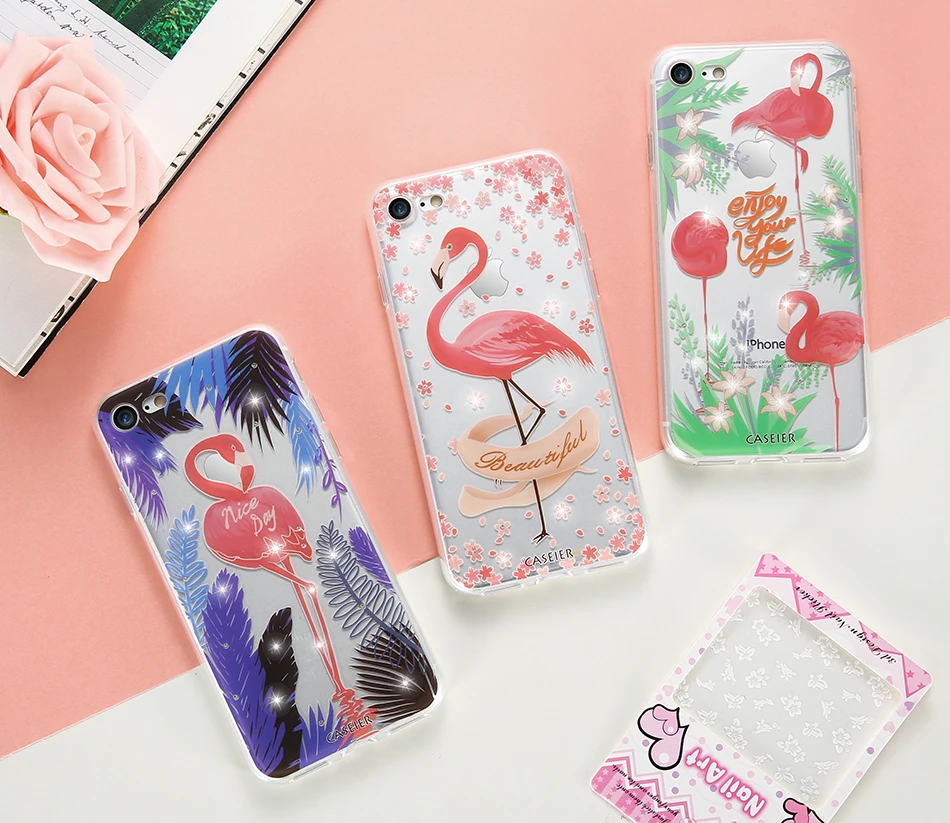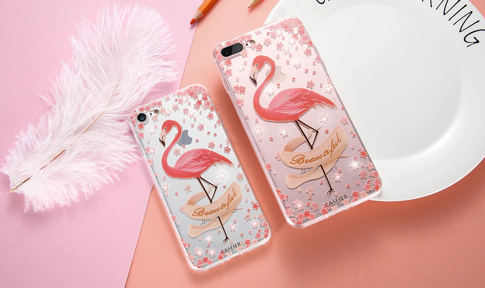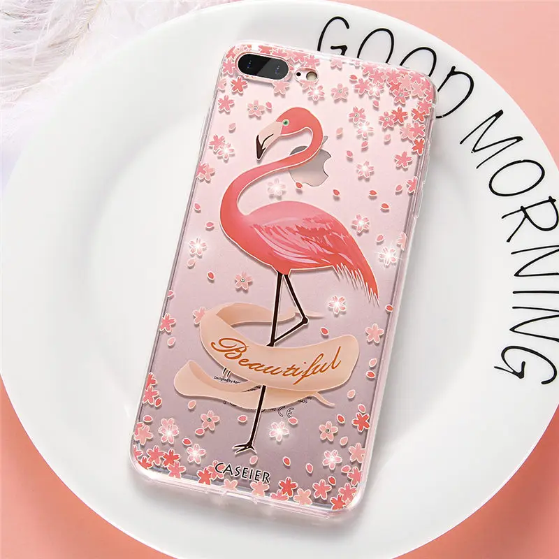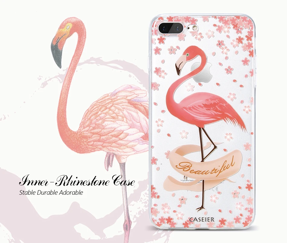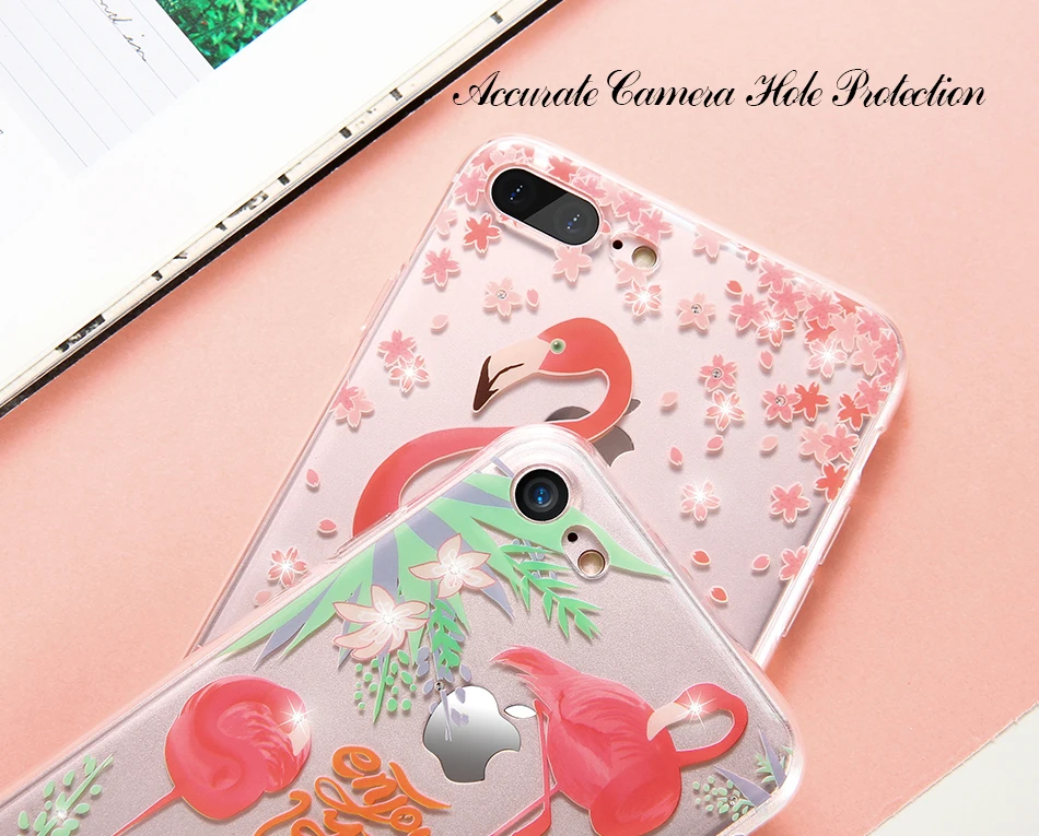 Features:Rhinestone Glitter Silicone Flamingo iPhone Case