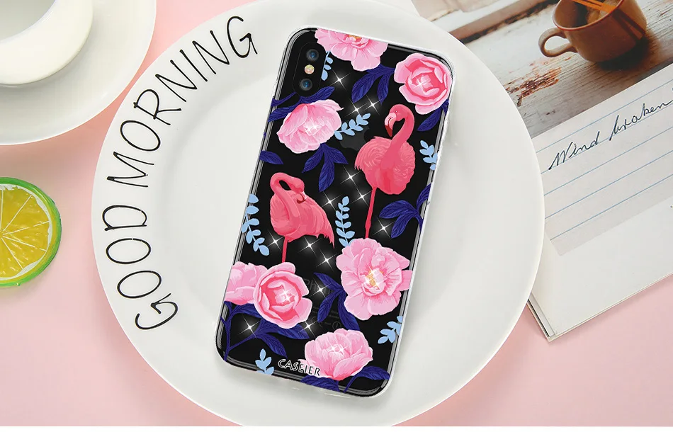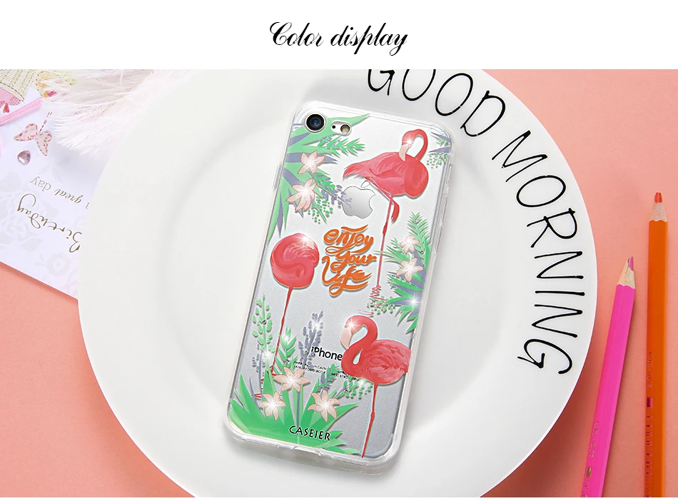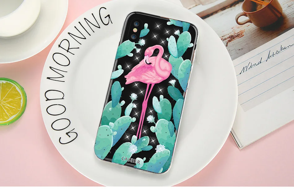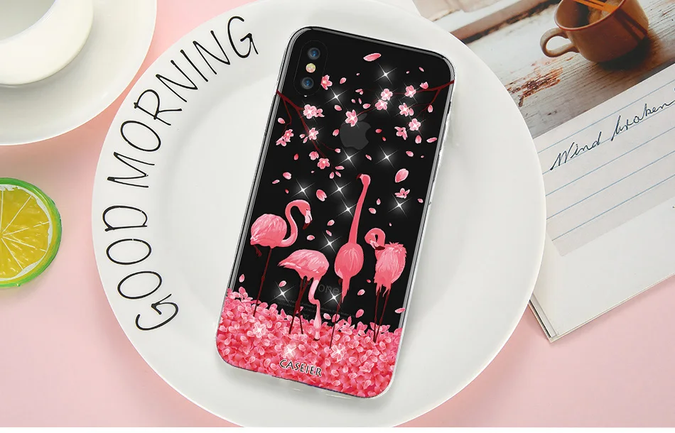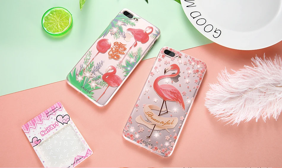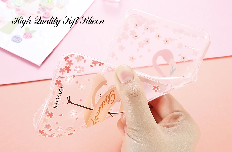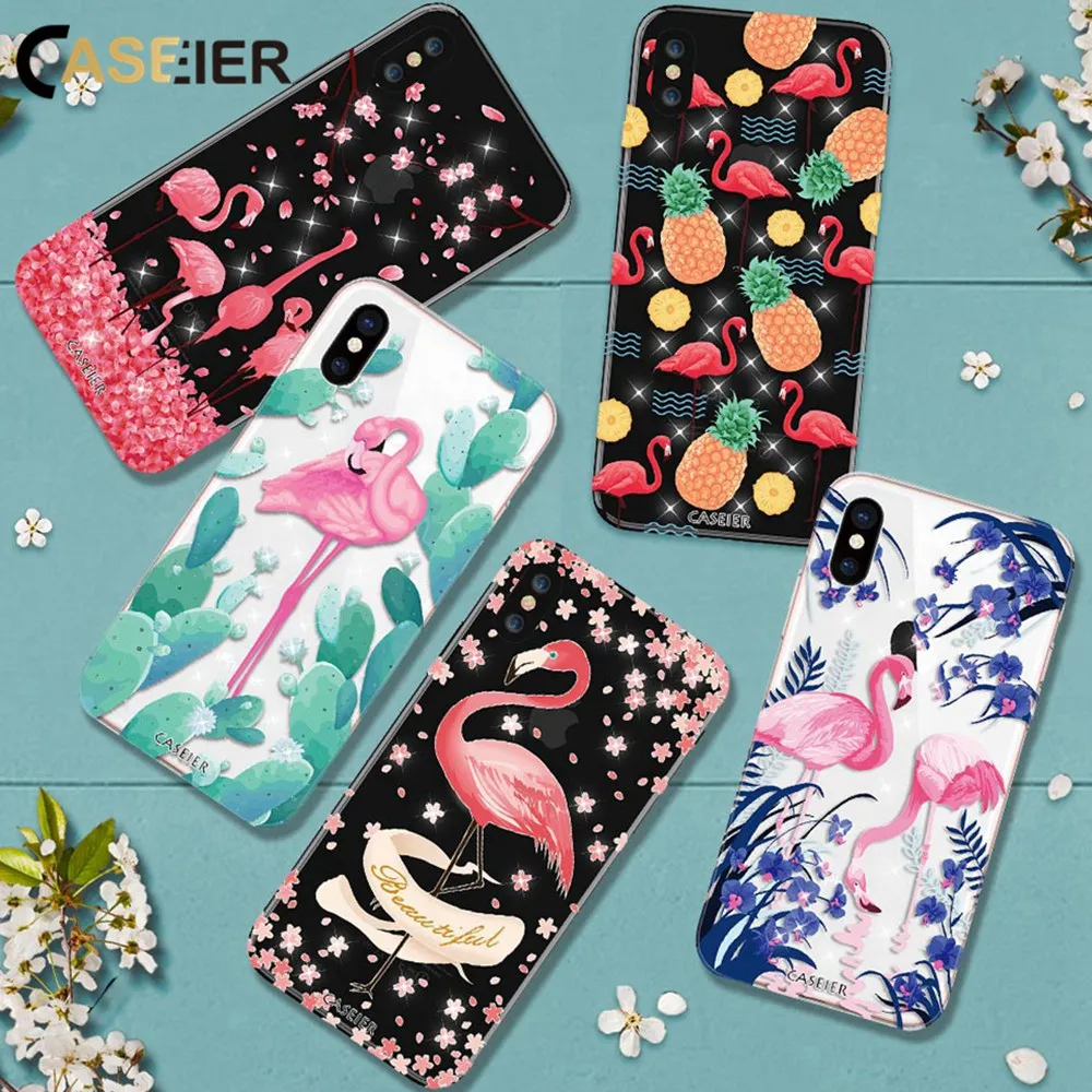Features:Rhinestone Glitter Silicone Flamingo iPhone Case