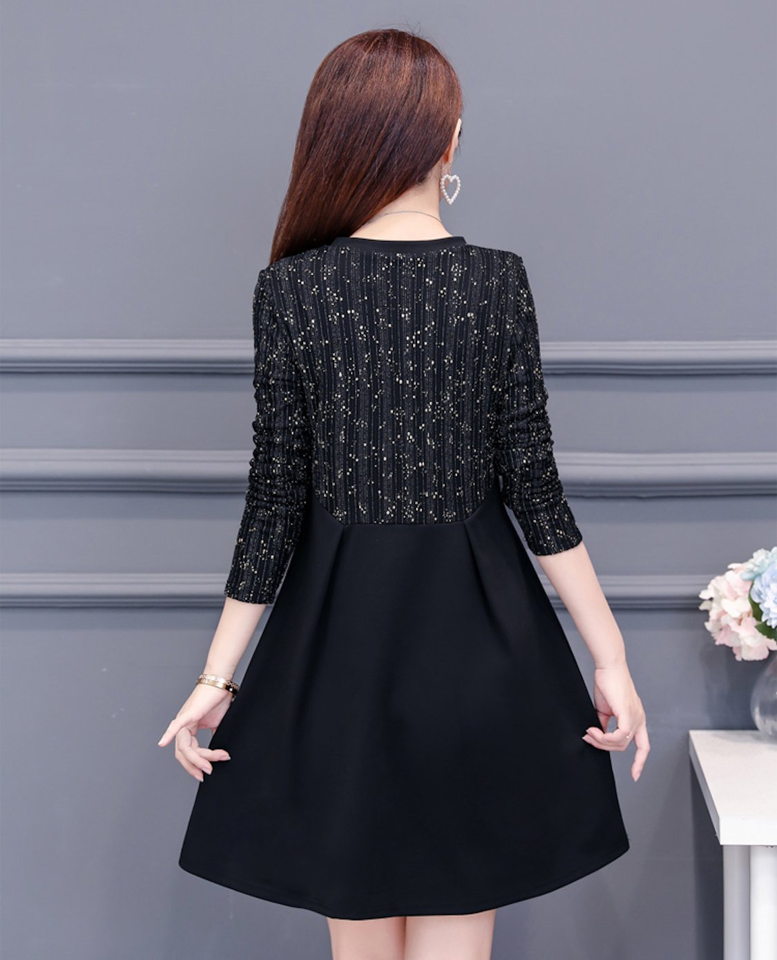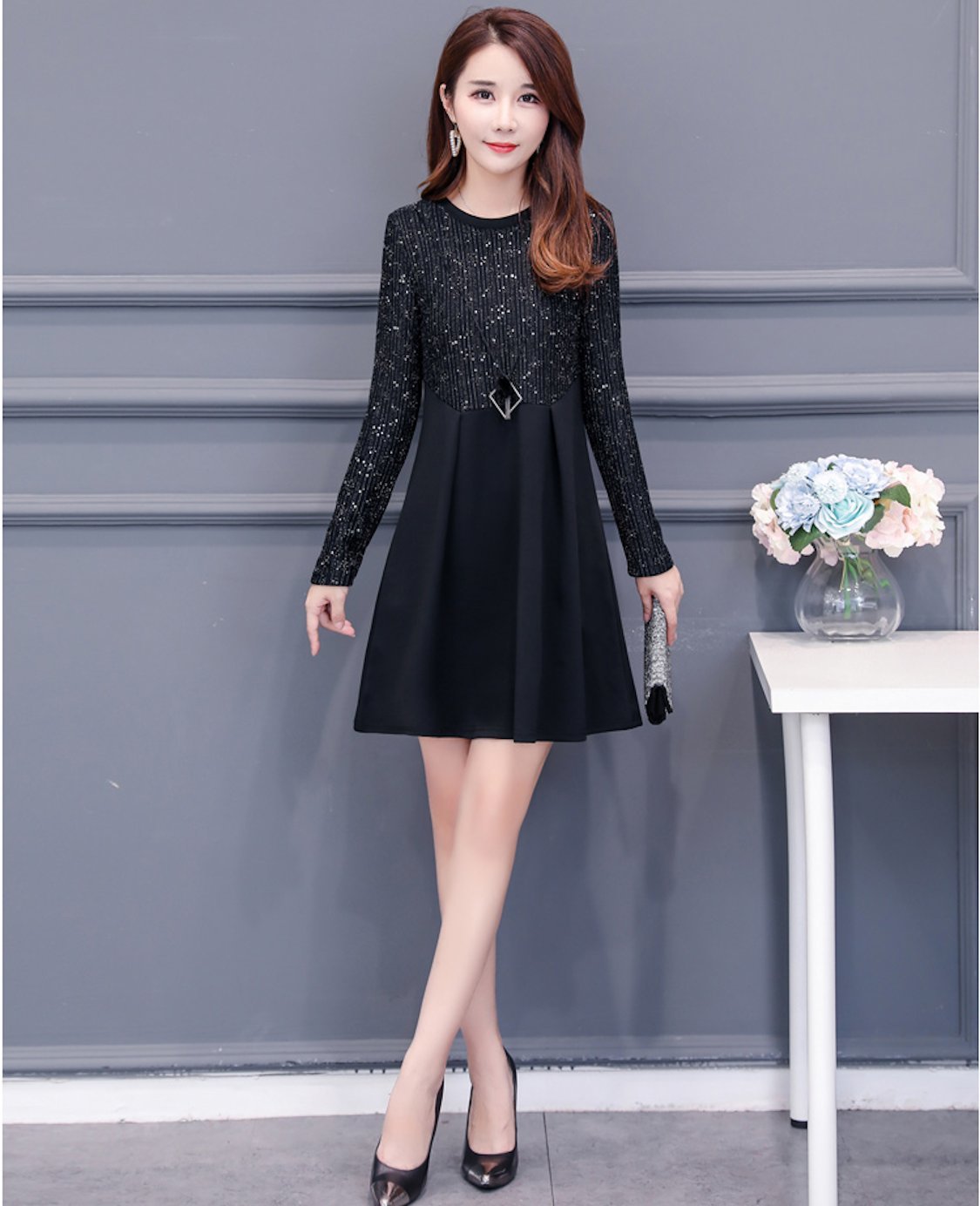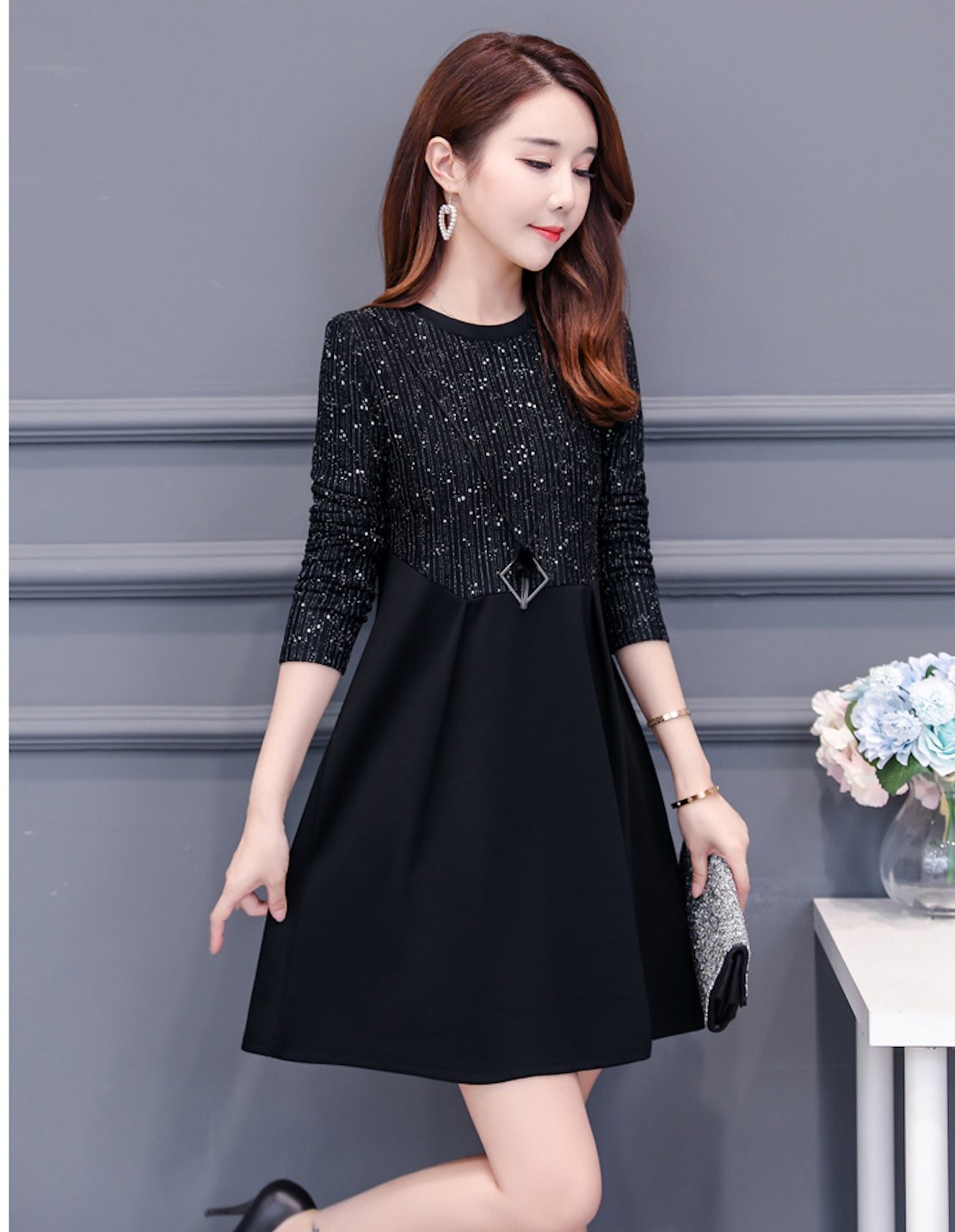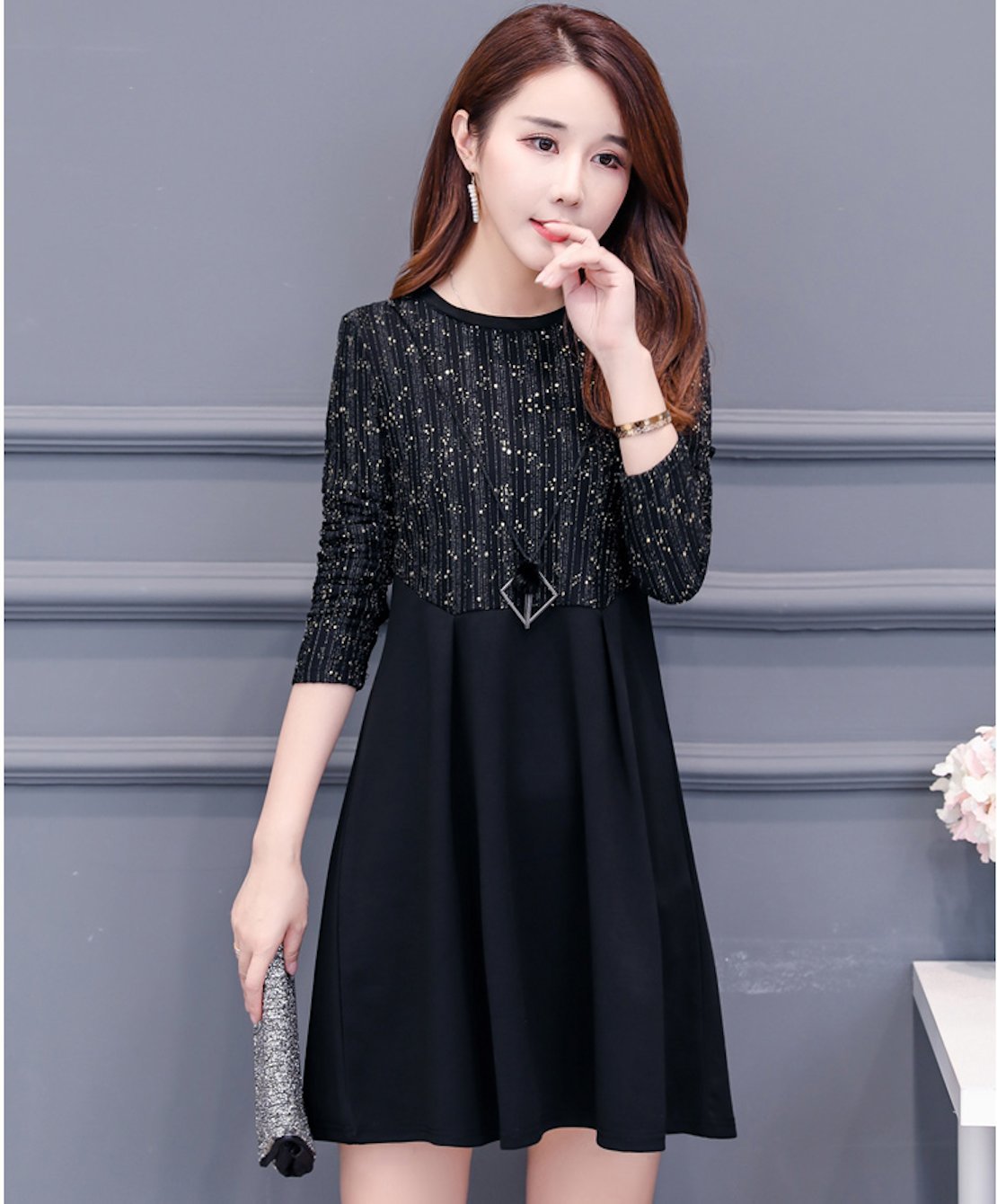 ラウンドネック ワンピース ラメ 異素材 裏起毛 ミニ丈 ドレス お呼ばれコーデ 大きいサイズ クルーネック ラウンドネック 切替 結婚式