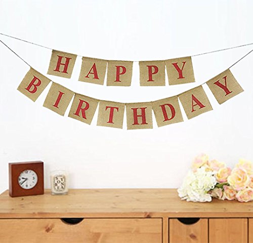 -. Feature : Congratulations! You are older!!!! What better way to celebrate than with our hand strung, premium quality burlap banner. Hang it to catch the attention of your loved ones at your birthday party. / VALUE: Adorable banner !! a great decoration for birthday party backdrop and it's perfect for any age,Whether for your kids 1st birthday or friends,family members,the aged . / Material : Made up of Natural Burlap. Painted in RED Spelled ,Our banner is premium quality and can be reused . / SIZE: Each piece measures 13cm (W)*13cm (L).it comes already assembled ,you can move each letter to any location you like . / GUARENTEE: We stand by our banners with a 100% money back guarantee.Why choose us ? Answer is in the product description below .