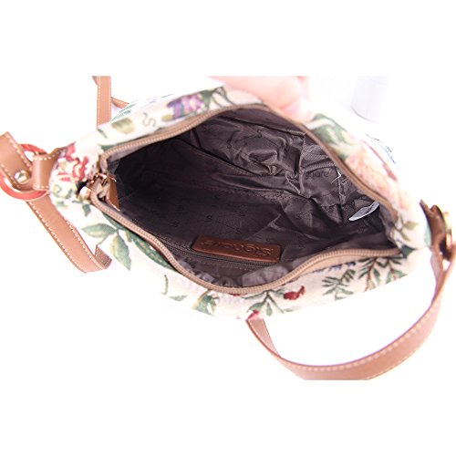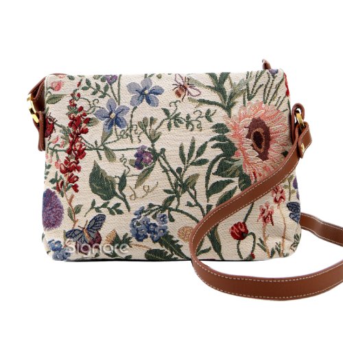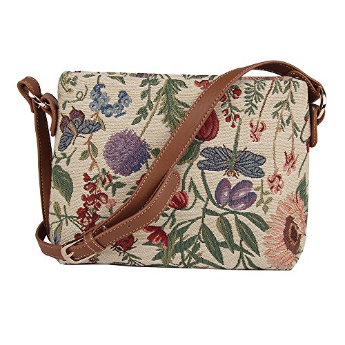 -. Brand : Signare -. Color : multicoloured -. Department : womens -. EAN : 5060238946117 -. Feature : A nifty satchel for your daily essentials, the across body bag is compactly designed in its appearance. / Fastened with a zip top; the inside features a slip pocket and zip pocket for storage; whilst also containing a modest capacity for make-up and travel accessories. / Fitted with an adjustable (up to 56cm) and buckled faux leather shoulder strap. / Size: W 28cm x H 18cm x D 8cm Weight: 0.25kg / The flora of an English country garden is stunningly reproduced through the tapestry material; creating a detailed pattern in which you can almost smell the fragrance and feel the morning breeze. -. ProductGroup : Shoes -. ProductTypeName : HANDBAG -. Size : W:11'' 28cm; H: 7'' 18cm; D: 3'' 7.5cm -. Title : Signare Womens Tapestry Across Body Bag in Floral Morning Garden Design
