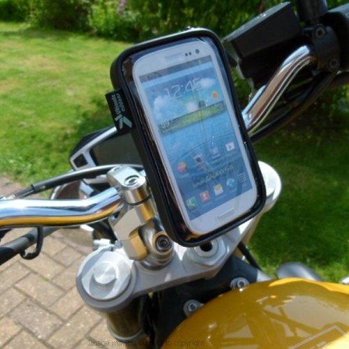 -. Binding : Wireless Phone Accessory -. Brand : 13712 -. Color : black -. EAN : 5052010022126 -. Feature : Professional style motorcycle handlebar PRO mount for the Samsung Galaxy S3 / SPH-L710 Sprint. Supplied with an IPX4 standard waterproof soft case. / The IPX4 standard offers protection from dirt, dust, damp weather & water splashes / light rain showers. The PRO mount is strong yet light-weight and fits handlebars with a diameter between 19mm - 35mm. / You will require a minimum clear space of 42mm on your handlebars to secure. Twin anodized screws fix the mount to your handlebars, providing a stable base for the case. / 360 degree adjustment - The case is held on a ball & socket adjuster with an easy to use tightening ring that locks your chosen position in place. / Included is a detachable soft web lanyard with safety clasp. Fits phones no larger than 138mm x 75mm x 15mm Double Zipper access. -. Label : Buybits Addons -. Manufacturer : Buybits Addons -. Model : 14687 -. PackageQuantity : 100 -. ProductGroup : Wireless -. ProductTypeName : WIRELESS_ACCESSORY -. Publisher : Buybits Addons -. Studio : Buybits Addons -. Title : IPX4 Waterproof PRO Motorcycle Bike Handlebar Mount for Samsung Galaxy S3 SPH-L710 Sprint