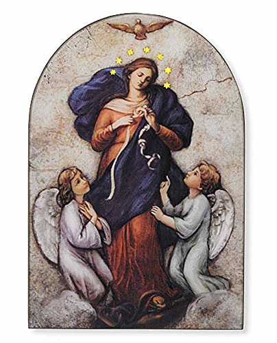 Mary Undoer of Knots Wooden Icon Arched Wall Plaque, 7 Inch