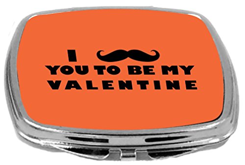 Rikki Knight I Mustache You to Be My Valentine Design Compact Mirror, Orange, 2 Ounce