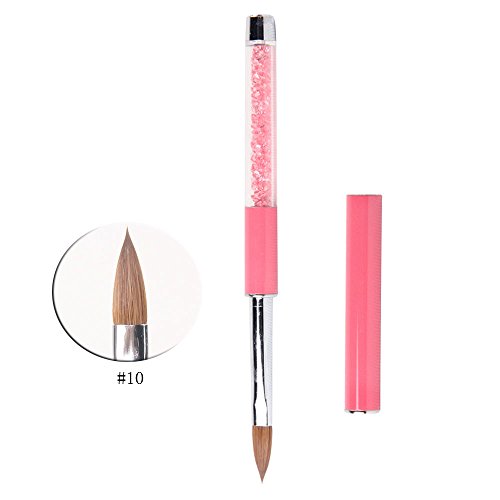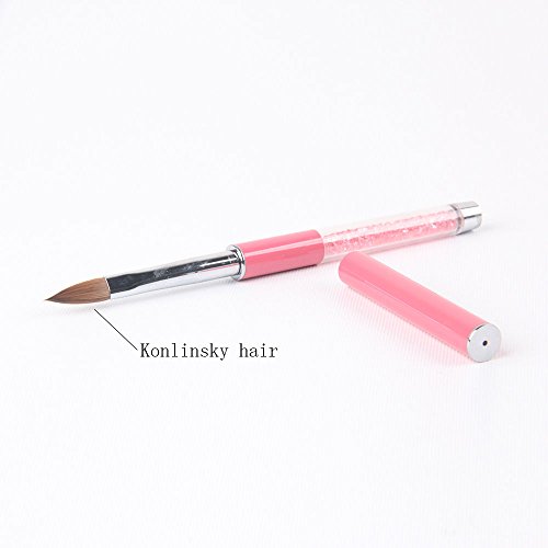 BQAN 1Pc Acrylic Nail Art Brush Pink Rhinestone Handle Konlinsky Sable Hair Nail Tool #10