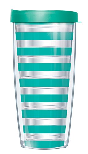 Teal Stripes On Clear Wrap Traveler 16 Oz Tumbler Cup with Teal Lid