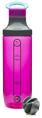 Zak! Designs HydraTrak Water Bottle with Mixer Ball and Chug Lid, Magenta, Mix Protein Shake, Smoothie or Enhanced Water, BPA-free and Break-resistant Plastic, 24 oz.