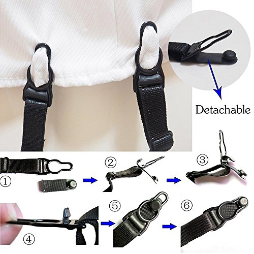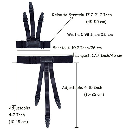 ★ (3) 3 buckles design, effectively anti-wrinkle! Fully adjustable design of shirt stays, high elastic, flexibility and skin-friendly, can adjust according to your leg size!