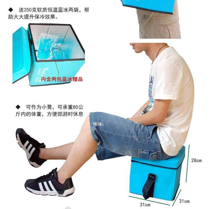 Patented design, a multi-purpose, can be used as an ice pack out to use, usually also a nice finishing box large capacity storage. It can be used as stools, bearing weight 80 kg within easy outing rest. Foldable when a flatbed, saving space