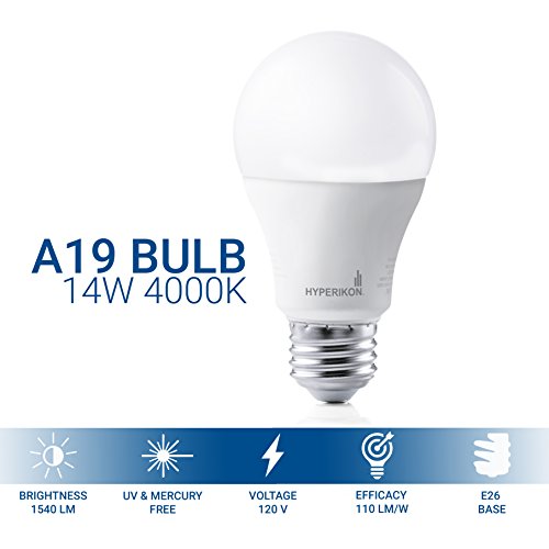 Hyperikon A19 LED Light Bulb, 14W (100W Equivalent), 4000K (Daylight Glow), 1540 Lumens, Non-Dimmable, Medium Screw Base (E26), UL - Great for Living Room, Lamps, Ceiling Light (6 Pack)