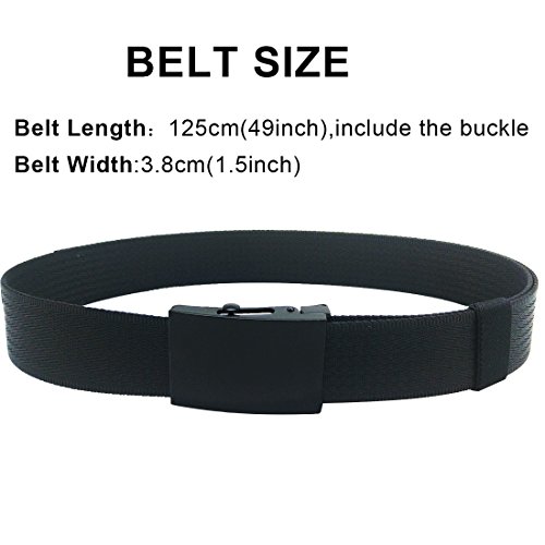 -. Feature : Black Slide Metal Buckle Belt, strong enough to carry any type of gear or survival equipment. Ideal for police, security guards, electricians, utility workers and electricians / 49 Inches Long belt, 1.5 Inch Wide Belt; Holeless belt; Fully adjustable belt. / Nylon webbing belt, fashionable atmosphere, exquisite workmanship, thick but flexibility and comfortable. Suitable for indoor and outdoor. / Tactical nylon belt for hiking, hunting, camping, climbing, shooting, water sports, CCW, airsoft gear. / Lifetime Guarantee refund policy.