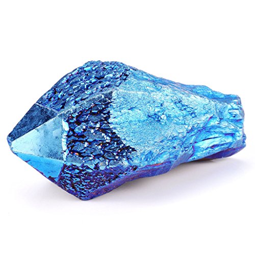 - Unique Natural Titanium Coated Dark Blue Flame Aura Raw Crystal Quartz Point Cluster Geode Druzy Gemstone Specimen Decor Fenghsui.
