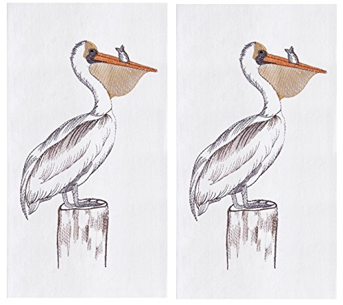 2 Flour Sack Kitchen Dishtowels, Embroidered Pelican Design