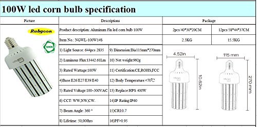 NGTlight 100W LED Corn Cob Bulbs Replace 400watt HPS HID MHL ,E39 Mogul 13442 lumens 4000K (Neutral White) LED Corn Lamp Retrofit High Bay Fixture Light