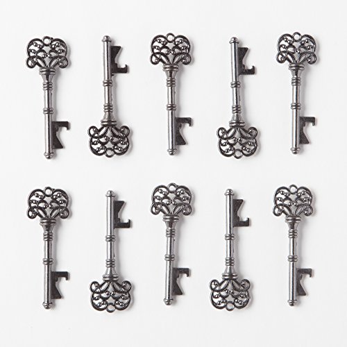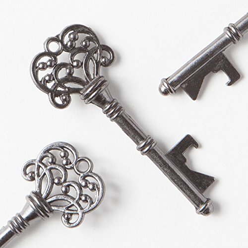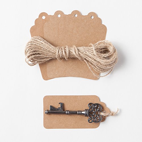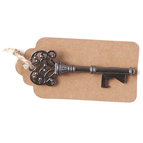 Key Bottle Openers with Kraft Tags and Twine, Vintage Skeleton Keys, Wedding Party Favors (Set of 50, Charcoal)