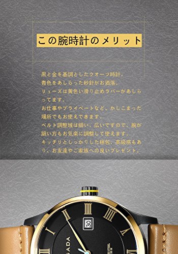 -. Feature : ➊.「紹介」こだわりを詰め込んだ逸品、華やかさを少し抑えてまとまりの良いシンプルなデザイン、またはブラックと金属を基調した文字盤がどんなシーンにも使えるフェイス、尚且つ人の目を引くような存在感があなたの心に自慢できます。 / ➋.「仕様」クオーツ:日本製ムーブメント;ケース:金属;裏蓋:ステンレス; ベルト:牛皮; 風防:ミネラルガラス;文字盤:カレンダー付けと青色秒針;駆動:電池(1~2年くらい使用頂けます)。 / ➌.「サイズ」ケースの厚さ:10mm;ケース全体(ベルト含まれておりません):40mm;ベルト:20mm「ベルトの工具で簡単に取り換えができます」。防水:50m(日常生活に適用、水圧の変化が激しい条件下ではご使用おやめください。); / ➍.「調節」日付は24時間で1日変更されるように設定されています。午前/午後を間違わないようにリュウズをまわして時刻を合わせます。合わせ方法:1.リューズを2段目まで引く2.針を6時にあわせる3.リューズを1段戻す4.日付を合わせる5.リューズを再度2段目まで引いて時間を合わせて終了です。午後9時~午前3時この時間帯に針を動かすのは絶対におやめください。 / ➎.「品質について」弊社の腕時計の表面はシールを貼っております、使う前にちゃんと外してからご使用してください。万が一、個別の商品は問題がございましたら、必ず弊社までお問い合わせてください。24時間以内に折り返しご連絡差し上げます。何卒よろしくお願いいたします。