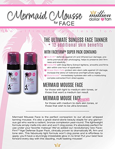 Mermaid Mousse Face Extreme is a deeper, richer, more intense version of our luxurious whipped face mousse. It's perfect for anyone wishing to be ultra-tanned! Packed with age-defying antioxidants and a revolutionary new goji berry extract, Instalift® Goji, it instantly smoothes and softens fine lines. It's also clinically proven to boost skin hydration within one hour, leaving you with even, nourished skin. This fabulously light formula won't clog pores and is effortless to apply; you'll have a stunningly irresistible glow in no time! Put your best face forward every day with this dazzling, multi-tasking mousse!Feature