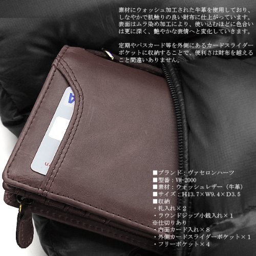-. Title : ■VACHERON HEARTS/ヴァセロンハーツ■ウォッシュレザー(牛革)メンズ折財布/カードスライダーウォレット■VH-2000/全5色