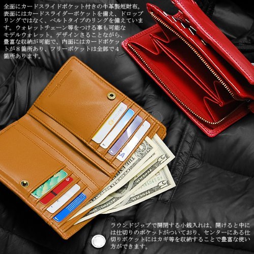 -. Feature : ■素材 ウォッシュレザー(牛革) / ■サイズ(約) 縦13.7×横9.4×幅 3.5cm ※サイズは目安です / ■仕様 札入れ×2、ラウンドジップ小銭入れ×1(※仕切りあり )、内面カード入れ×8、外側カードスライダーポケット×1、フリーポケット×4 / ■付属品 専用BOX付き