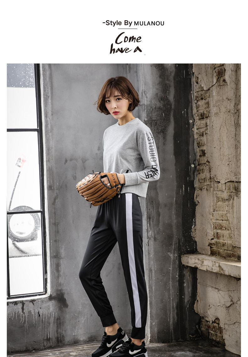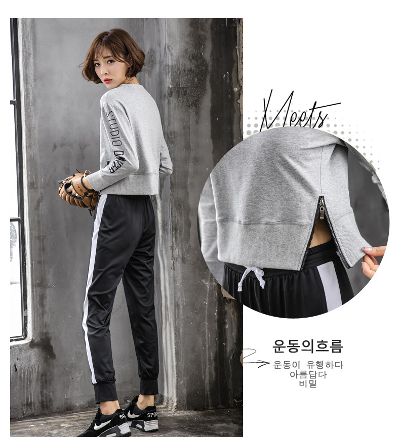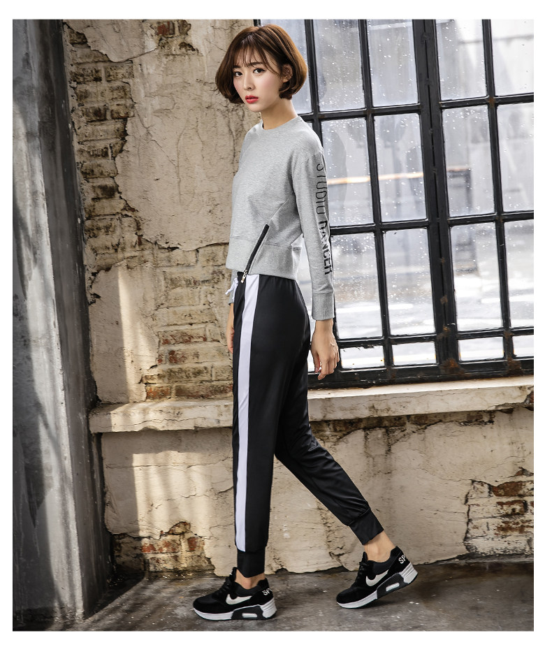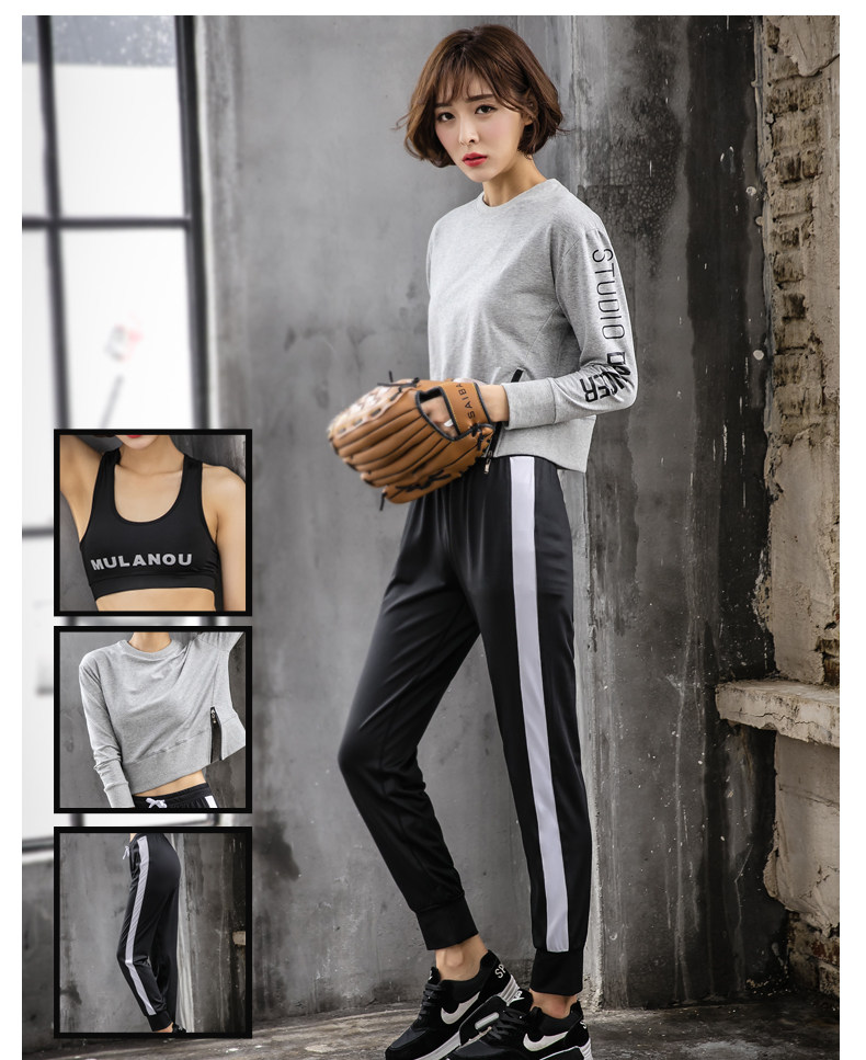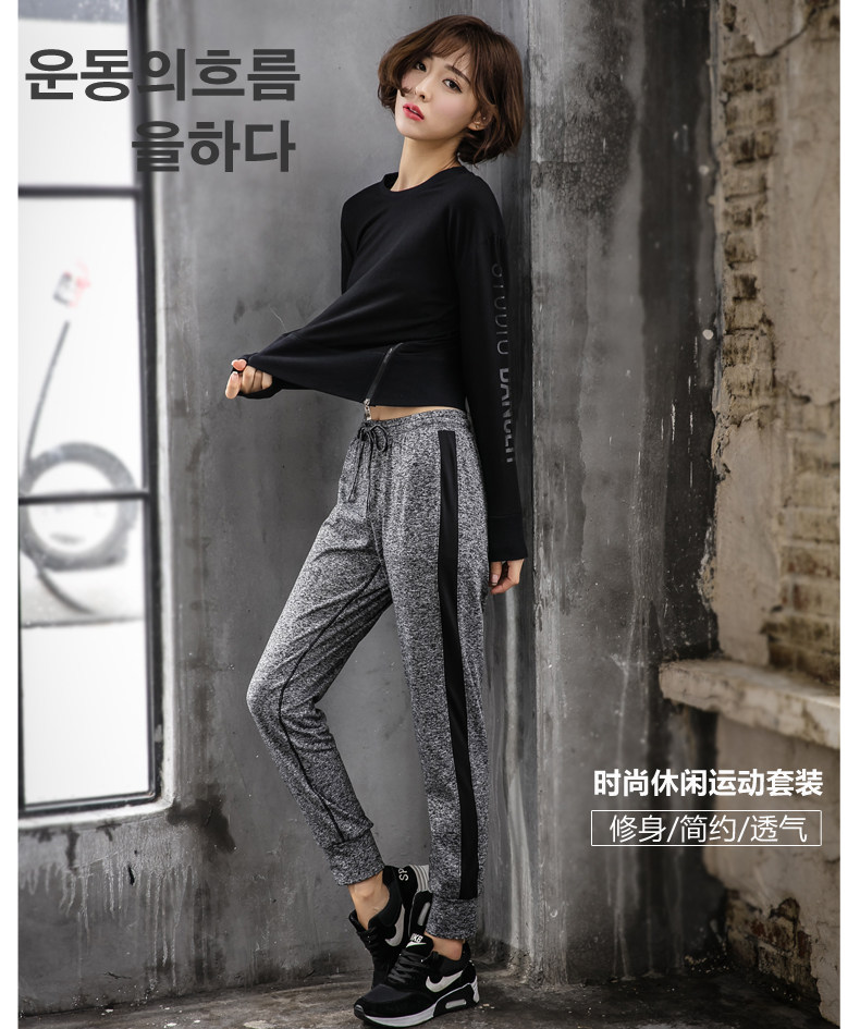 秋冬新款韩国健身房运动套装女速干长袖长裤宽松跑步健身服瑜伽服