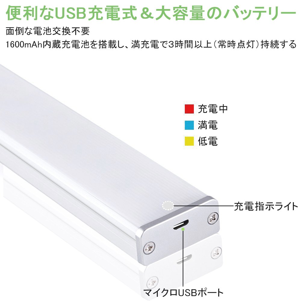 It can last for more than 3 hours (always lit) with full charge, 1 to 2 months (sensor mode, 10 times a day operation).