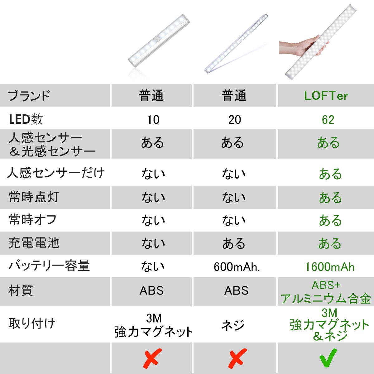 High luminance and long life can be realized with 3 large and high quality LED lights (62 pieces, 230 LM).