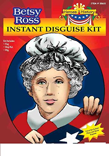 -. Brand : DOMAGRON -. Color : black -. Department : unisex-child -. Feature : Whether dressing up for Halloween or your Patriotic celebration, this set is the perfect addition to your patriotic costume. This set contains a mob cap, wig, and flag. These sets are available in a whole array of patriotic figures including George Washington, Bren Franklin, Thomas Jefferson, and Uncle Sam. -. MPN : 1-24178 -. PackageQuantity : 1 -. PartNumber : 1-24178 -. ProductGroup : Apparel -. ProductTypeName : CHILDRENS_COSTUME -. Size : ALL -. Title : Heroes in Patriotic History Instant Disguise Set - Betsy Ross -. UPC : 010315824178