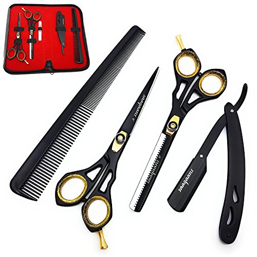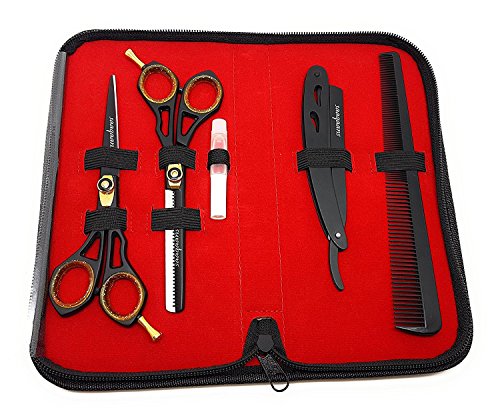 Studio : Saaqaans Publisher : Saaqaans Binding : Misc. Product Description Excellent Top Quality Branded Professional Barber Scissors Kit The products are made to the highest specification and its quality tested and guaranteed. This has made it the choice of professionals and designed to cut hair smoothly and evenly without causing any distress to the hands and fingers. Comfortable and stylish design with finger rest. Package Contains * 1 x Black Razor Scissor * 1 x Black Thinning Scissor * 1 x Comb * 1 x Straight Cut Throat Razor (Instructions Included) * 1 x Lubricant Oil Tube * 1 x Luxury Black Case Instructions to Follow ? Clean all instruments for its long life ? Kindly use oil while cleaning keeping ? Keep them on dry safe place Buy With 100% Confidence! All Saaqaans products come with 100% money back guarantee, so if you're not satisfied with our products or for any reason, you may return it in original condition (unused) within 30 days and get a full refund. 0 |